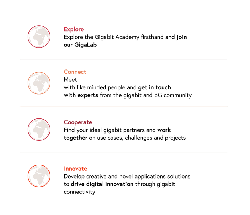 The Gigabit Wall is a virtual pinboard, created on the website of the Austrian Research Promotion Agency, where a number of current gigabit and 5G use cases implemented from partner organizations of the Gigabit Academy are presented. The Gigabit Wall is continuously updated!